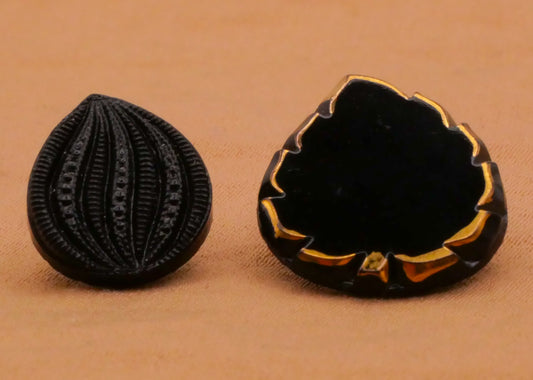 Leaf Feather Vintage Black Glass Button Various 11-18mm