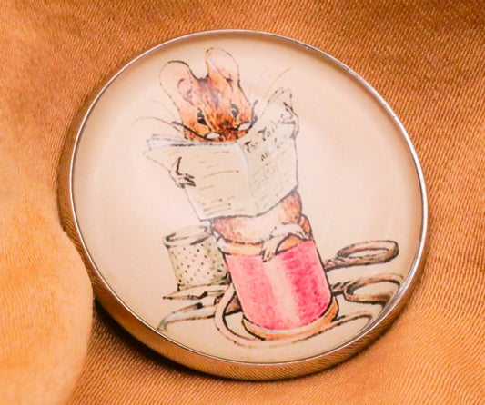 Frontispiece The Tailor Mouse Beatrix Potter Sewing Glass Silver Metal Button 27mm