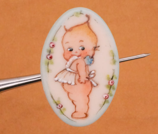 Kewpie Doll Apron Hand-Painted Porcelain Ceramic Button 18x29mm