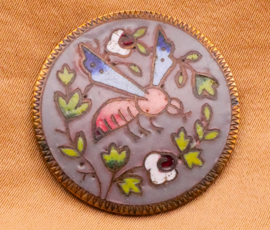 Bug Flying Insect Bee Cloisonné Enamel Victorian Metal Button 26mm