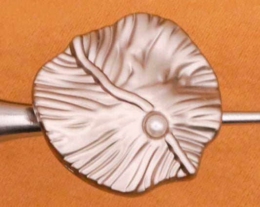 Lily Pad Leaf Faux Pearl Silver Metal Button 18mm