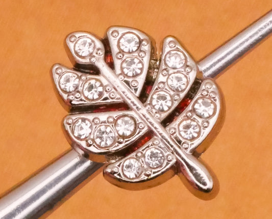 Leaf Rhinestone Silver Metal Pair of Buttons 9x13mm