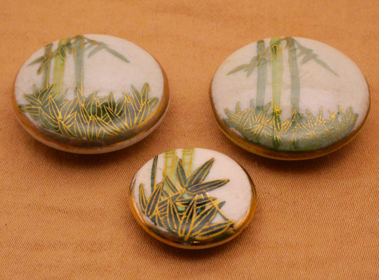 Bamboo Satsuma Hand-Painted Porcelain Ceramic Vintage Button 19-24mm