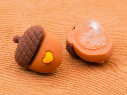 Acorn Heart Brown Plastic Pair of Buttons 11x14mm