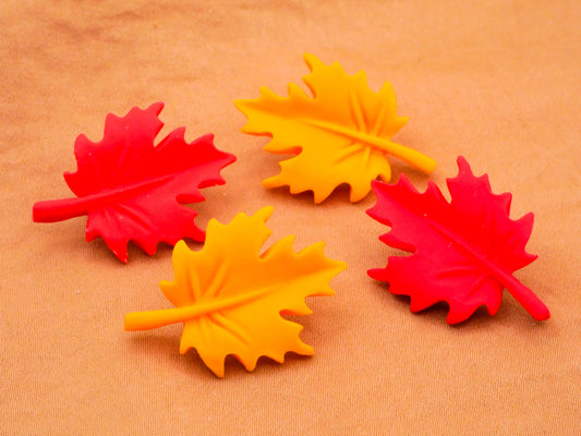 Leaf Leaves Red Yellow Plastic Set of Four Buttons 21x29mm