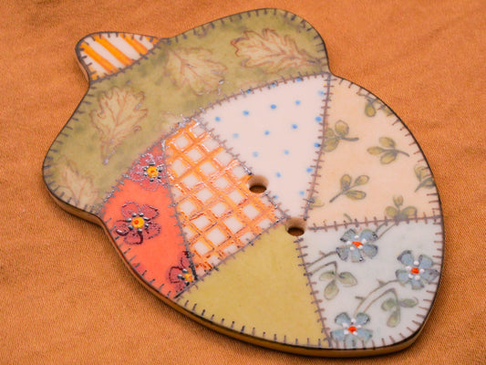 Acorn Patchwork Hand-Painted Large Porcelain Ceramic Button 51x72mm