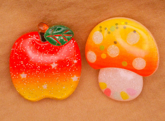 Apple Mushroom Glitter Plastic Button Various 24-30mm