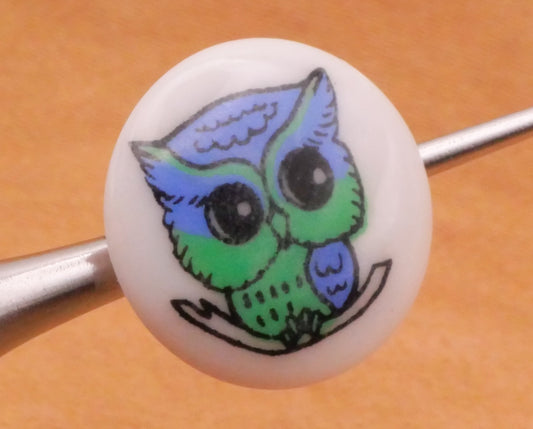 Owl Blue Green White Plastic Button 14mm
