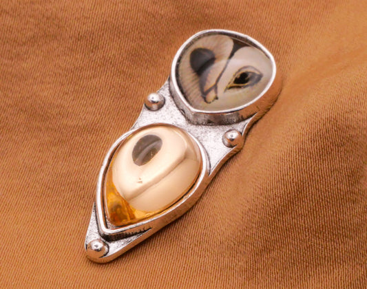 Owl Champagne Teardrop Belly Silver Metal Button 13x32mm