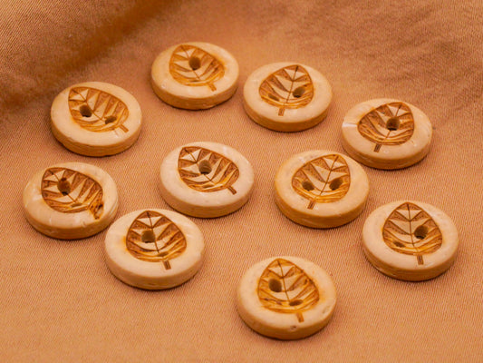 Leaf Design Etched Coconut Shell Set of Ten Buttons 13mm