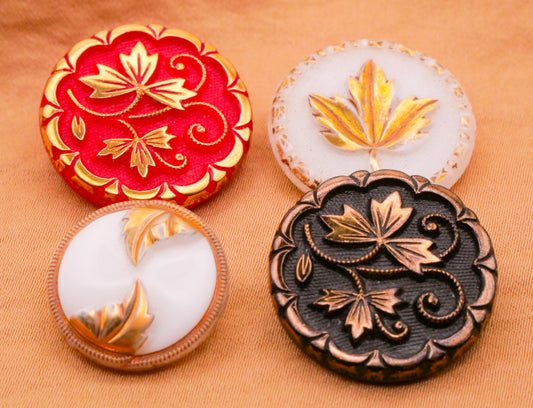 Leaf Leaves Gold Painted Vintage Glass Button Various 18-23mm