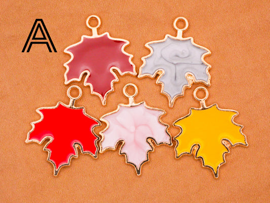 Leaf Leaves Fall Colors Enamel Metal Set of Five Charms Embellishments Various 19x24mm