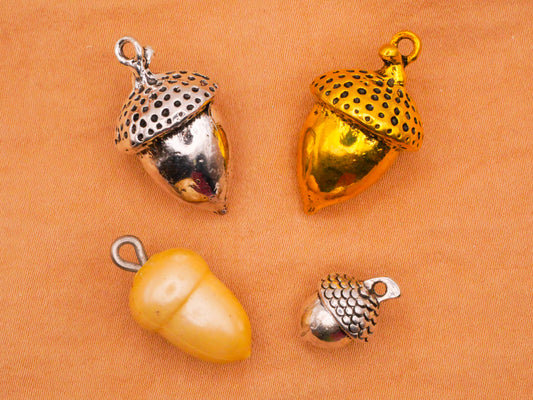 Acorn Silver Gold Vintage Plastic Charm Embellishment Various 20-27mm