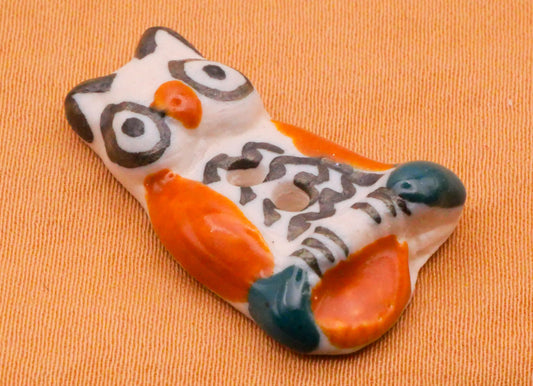 Owl Hand-Painted Orange Teal Ceramic Button 17x28mm