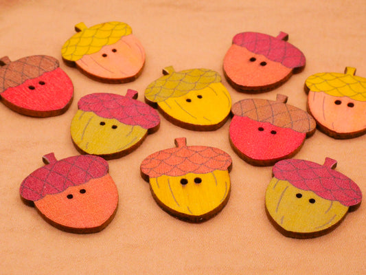 Acorn Fall Colors Wood Set of Ten Buttons 23x27mm