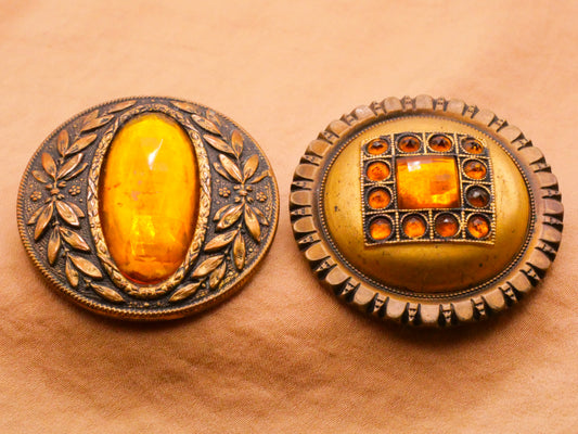Gay 90s Victorian Jewel Wreath Square Amber Glass Metal Large Button Various 41-42mm