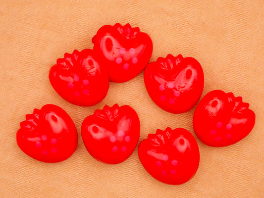 Apple Pink Dots Plastic Set of Seven Buttons 15x16mm