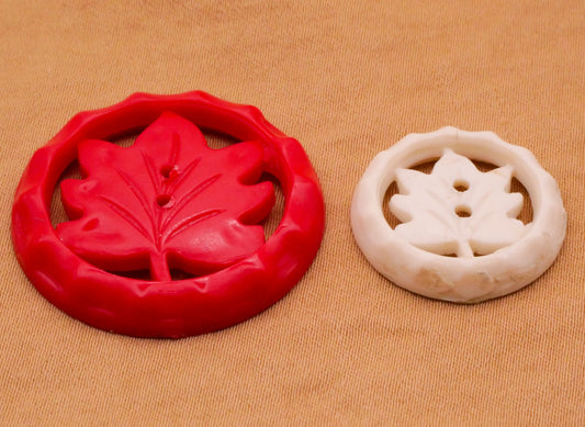 Leaf Red White Pierced Vintage Plastic Sew-Thru Button Various 20-29mm