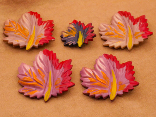 Leaf Multi-Color Red Pink Purple Celluloid Early Plastic Button Various 21-35mm
