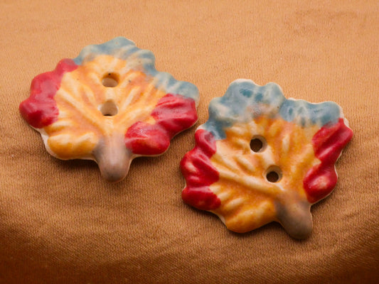 Leaf Tri-Color Hand-Painted Glaze Ceramic Button 27x28mm
