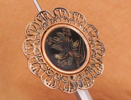 Flower Looks Like Horn Celluloid Filigree Metal Victorian Button 31mm