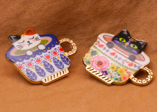 Cat Kitty Tea Cup Colorful Metal Button Various 21x23mm