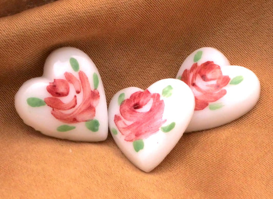 Heart Rose Hand-PaintedWhite Glass Button 14x15mm