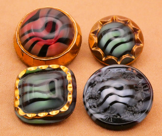 Wavy Black Stripes Color Dig Dug Vintage Glass Button Various 15-19mm