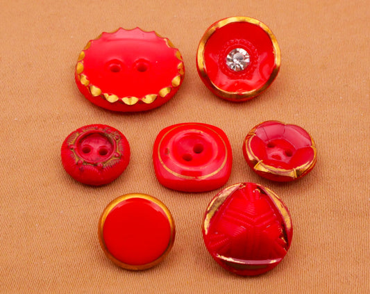 Red Glass Gold Painted Vintage Button Various 9-22mm