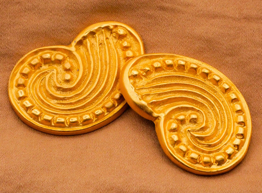 Wave Swirl Shape Gold Metal Vintage Large Button 24x35mm