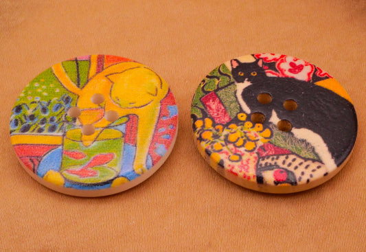 House Cat Kitty Scene Wood Button Various 30mm