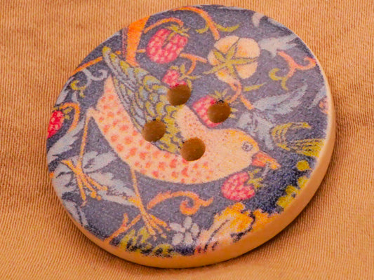 Bird Berries Art Nouveau Design Wood Button 30mm