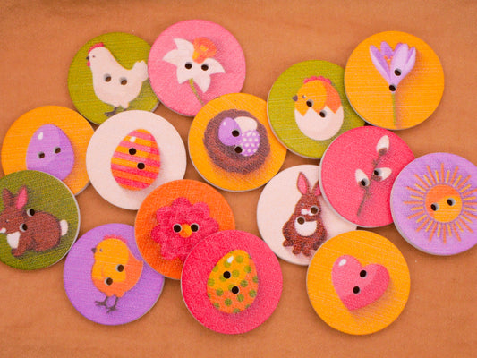 Easter Spring Wood Assorted Set of Eight Buttons 25mm