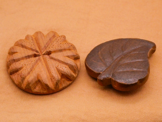 Heart Snowflake or Leaf Carved Wood Vintage Button Various 32-39mm