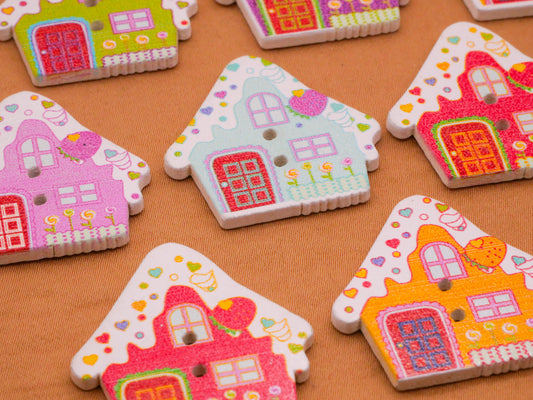 Gingerbread House Frosted Roof Wood Set of Ten Buttons 29x30mm