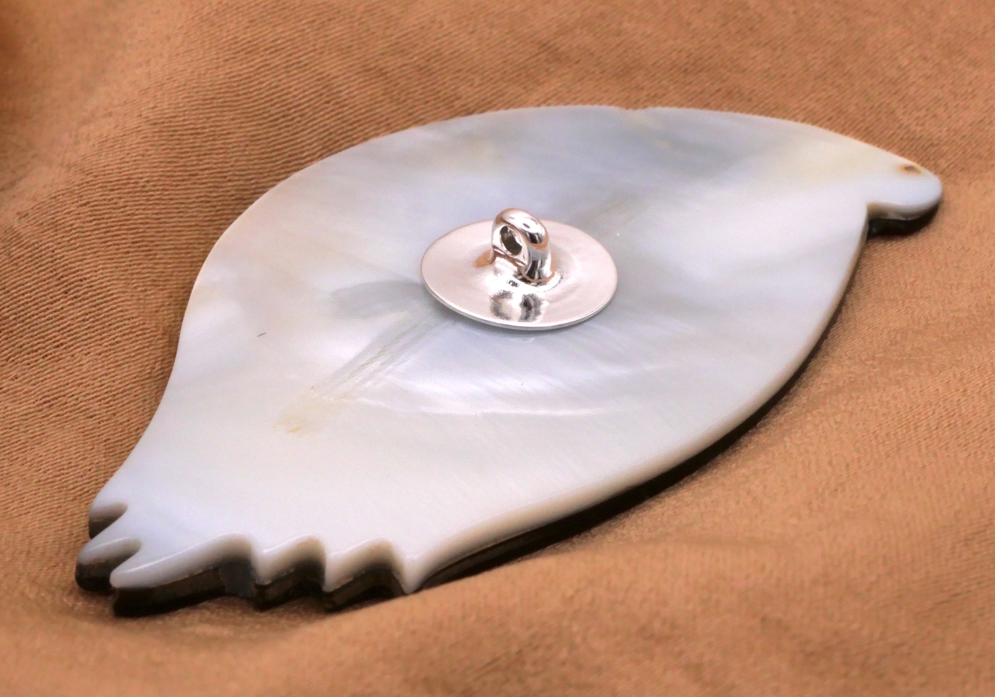Wow! This abalone shell eye is amazing! Really gorgeous and unusual! Shimmers in blues, purples, and greens. This is a large button measuring 30 x 55mm / 1.18" x 2.19".
