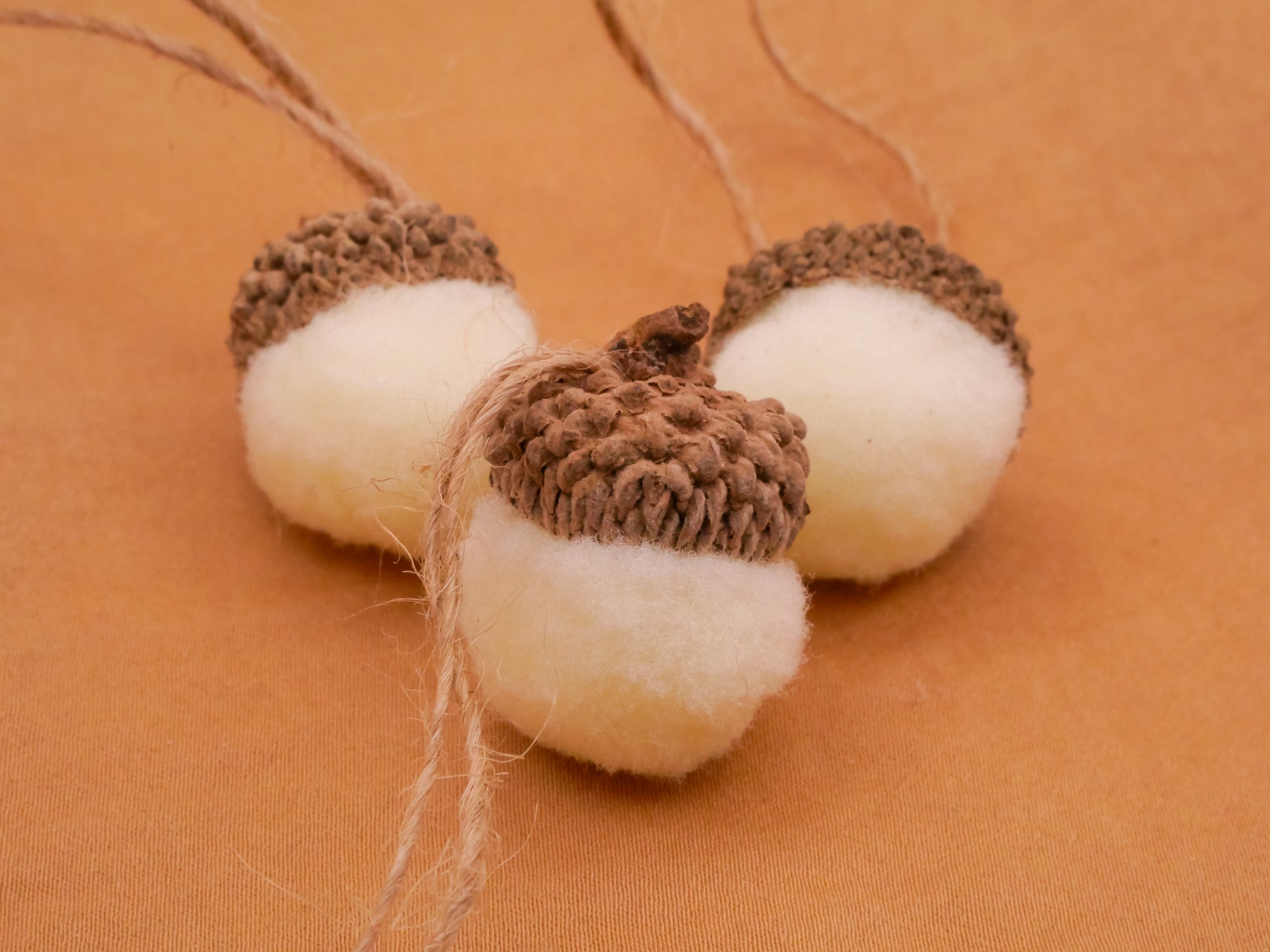 Adorable felted look acorn ornaments with real acorn top! Sold in set of three. Each varies slightly and measure approx. 22 x 26mm / .87" x 1.02".