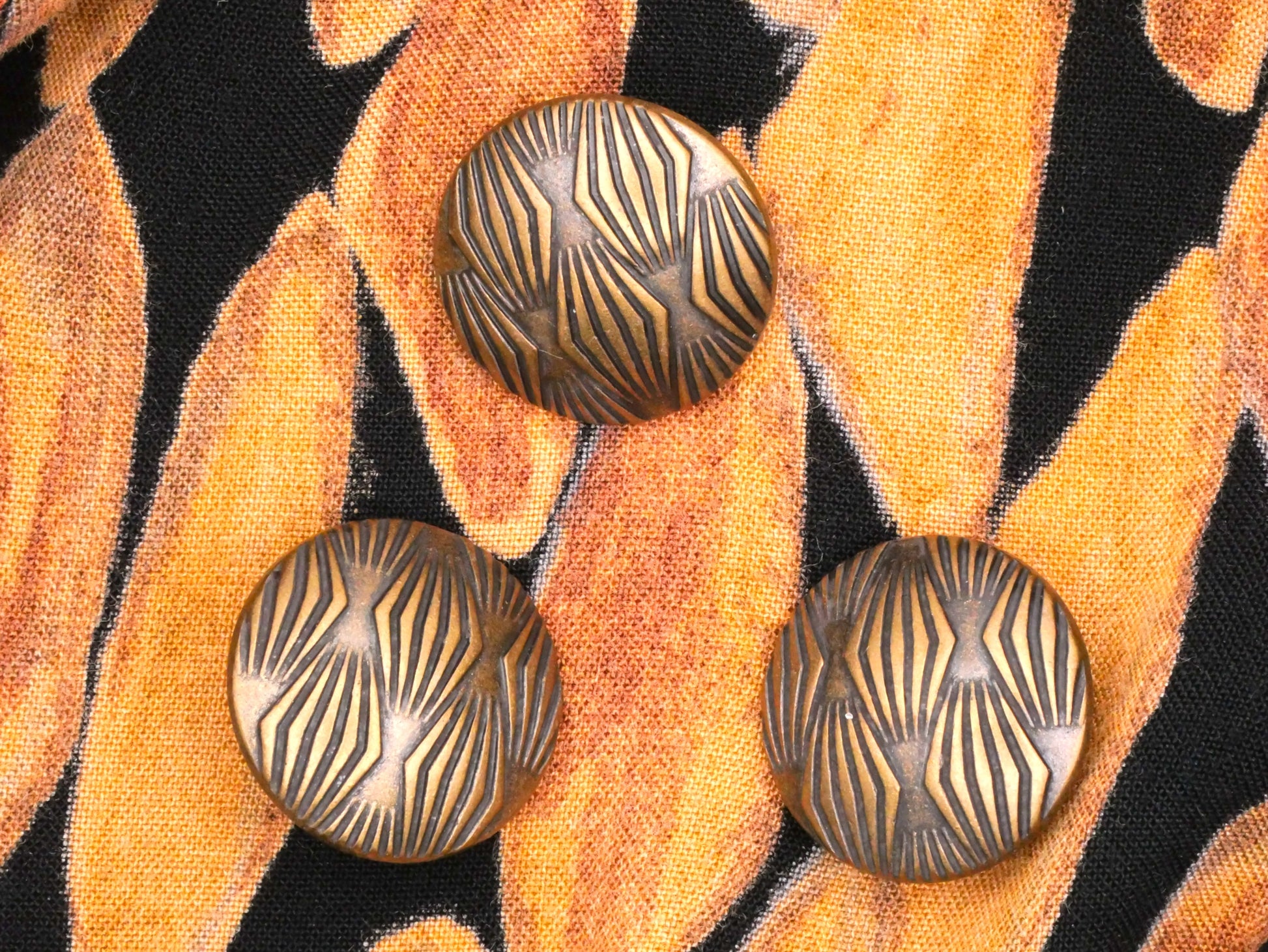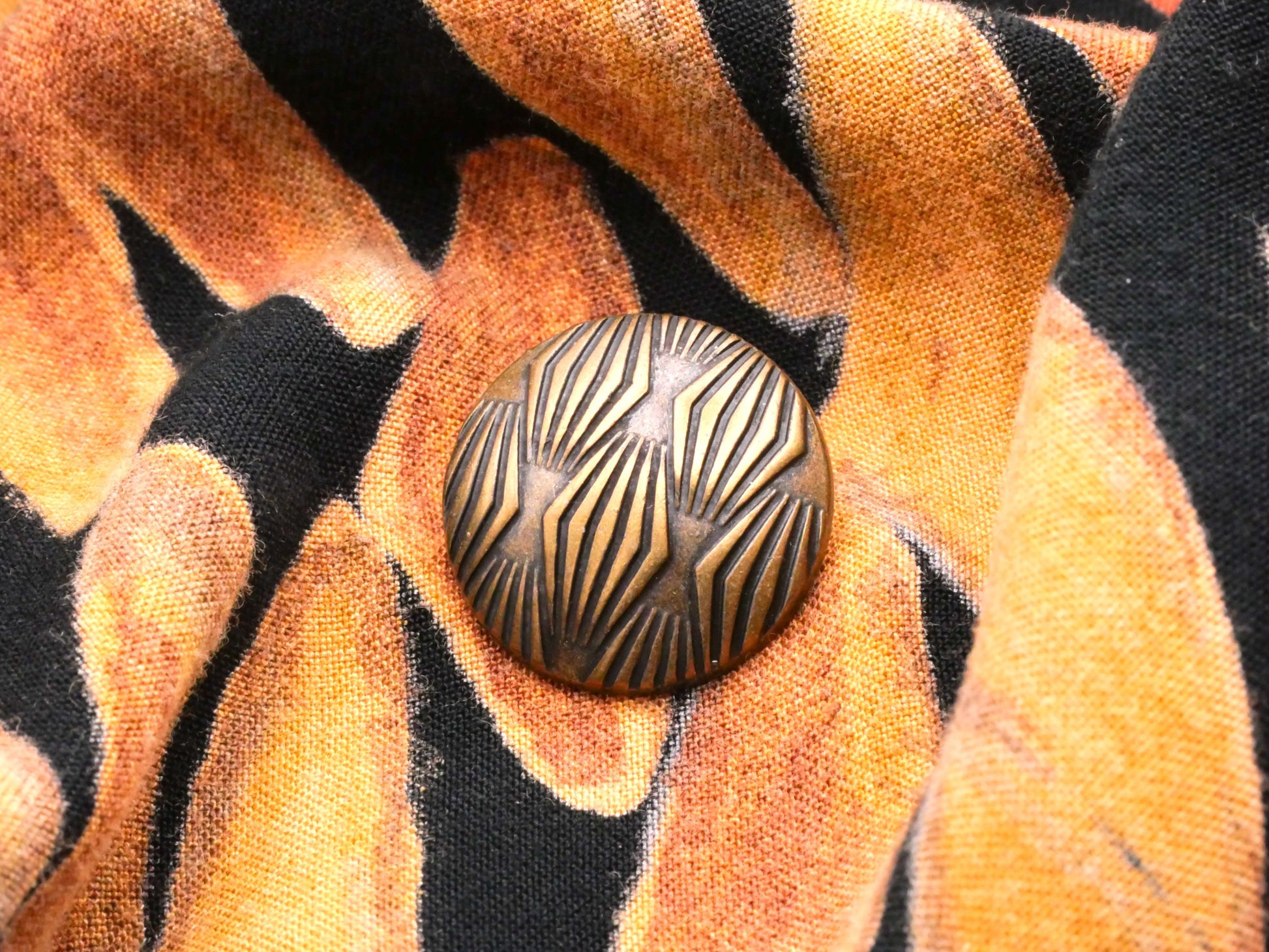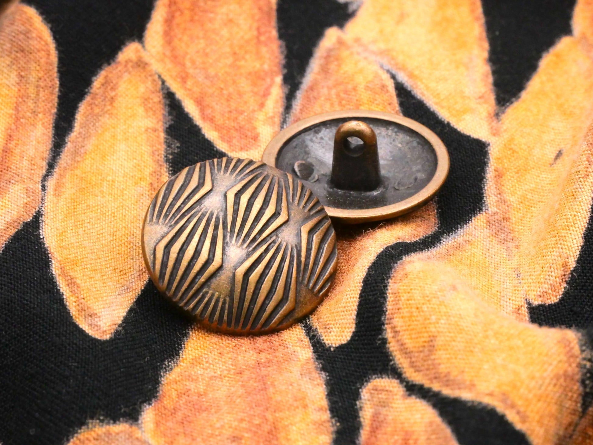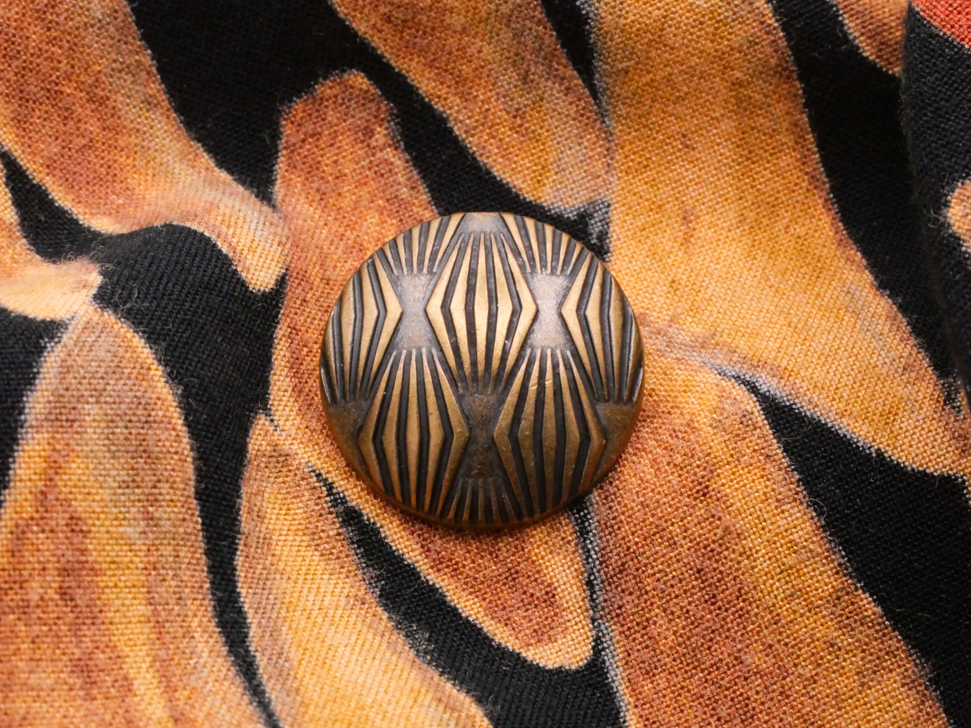 Lovely art deco style diamond pattern on this bronze colored metal button. Measures 20mm / .79" in diameter.