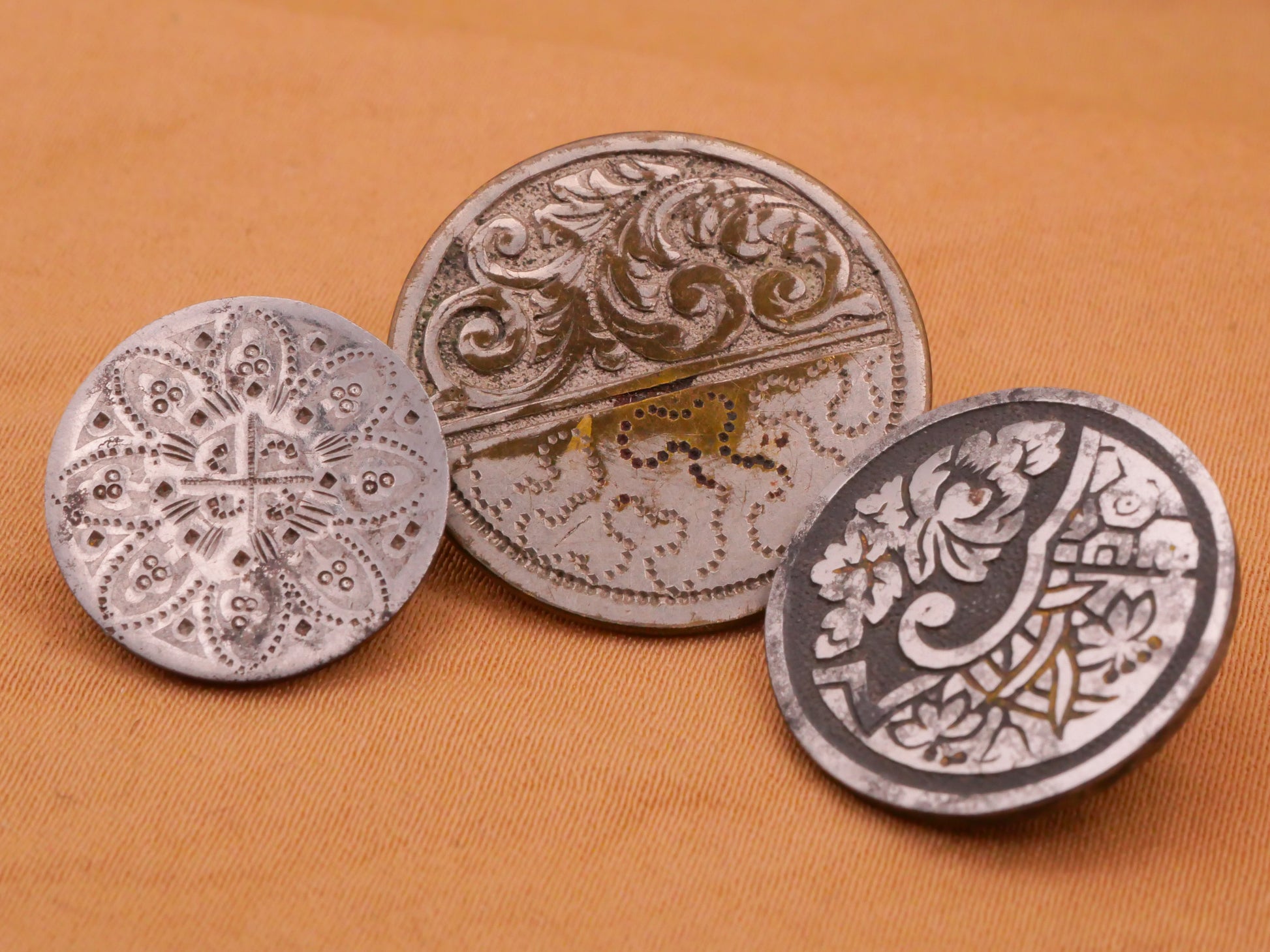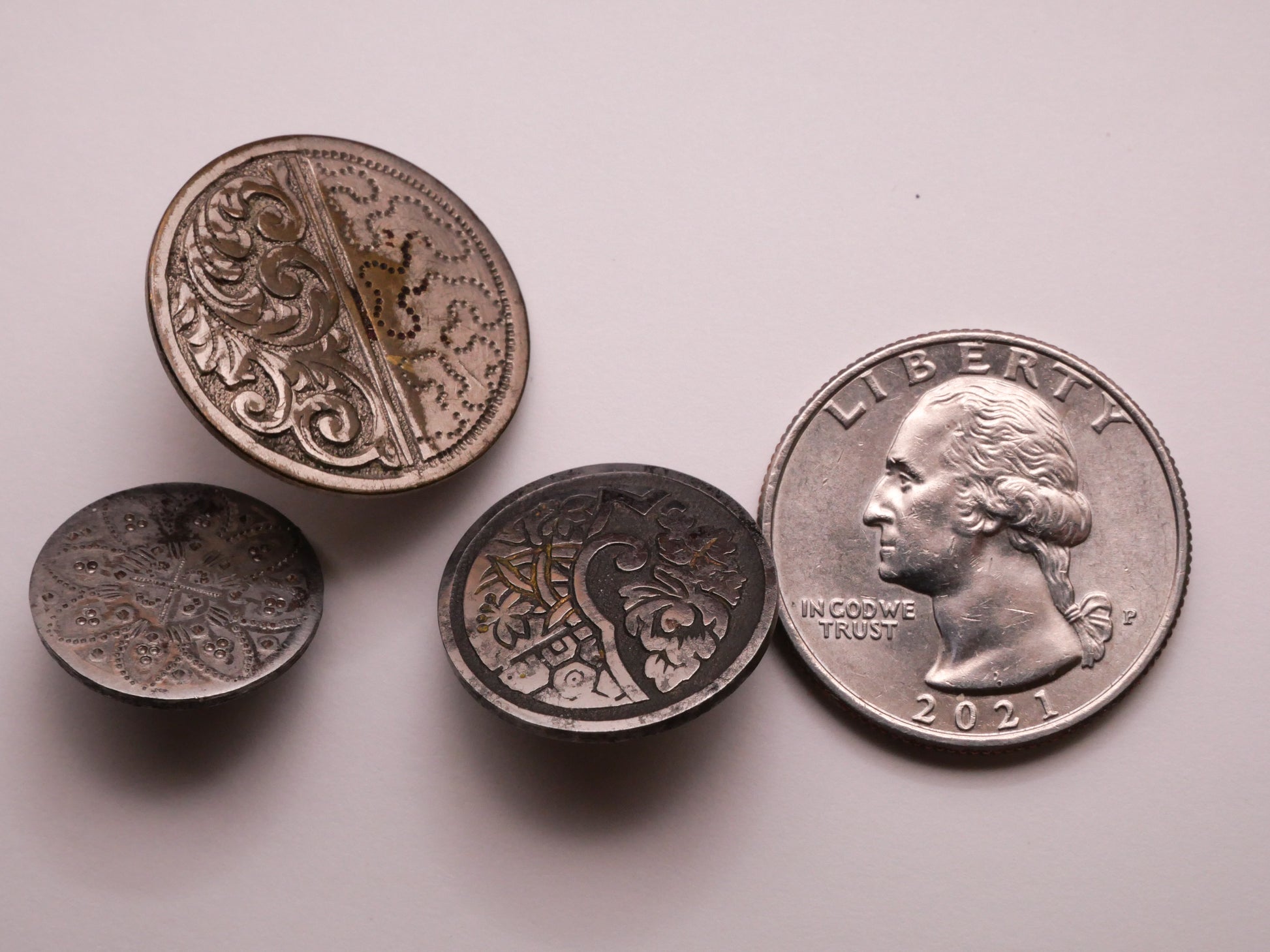 Asian Flower Scroll Design Mirror Finish Metal Set of Three Buttons 16-23mm