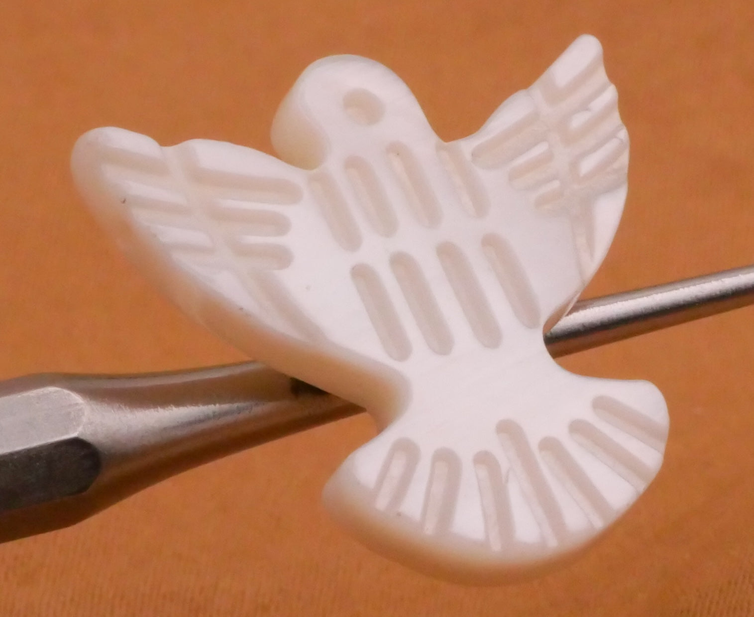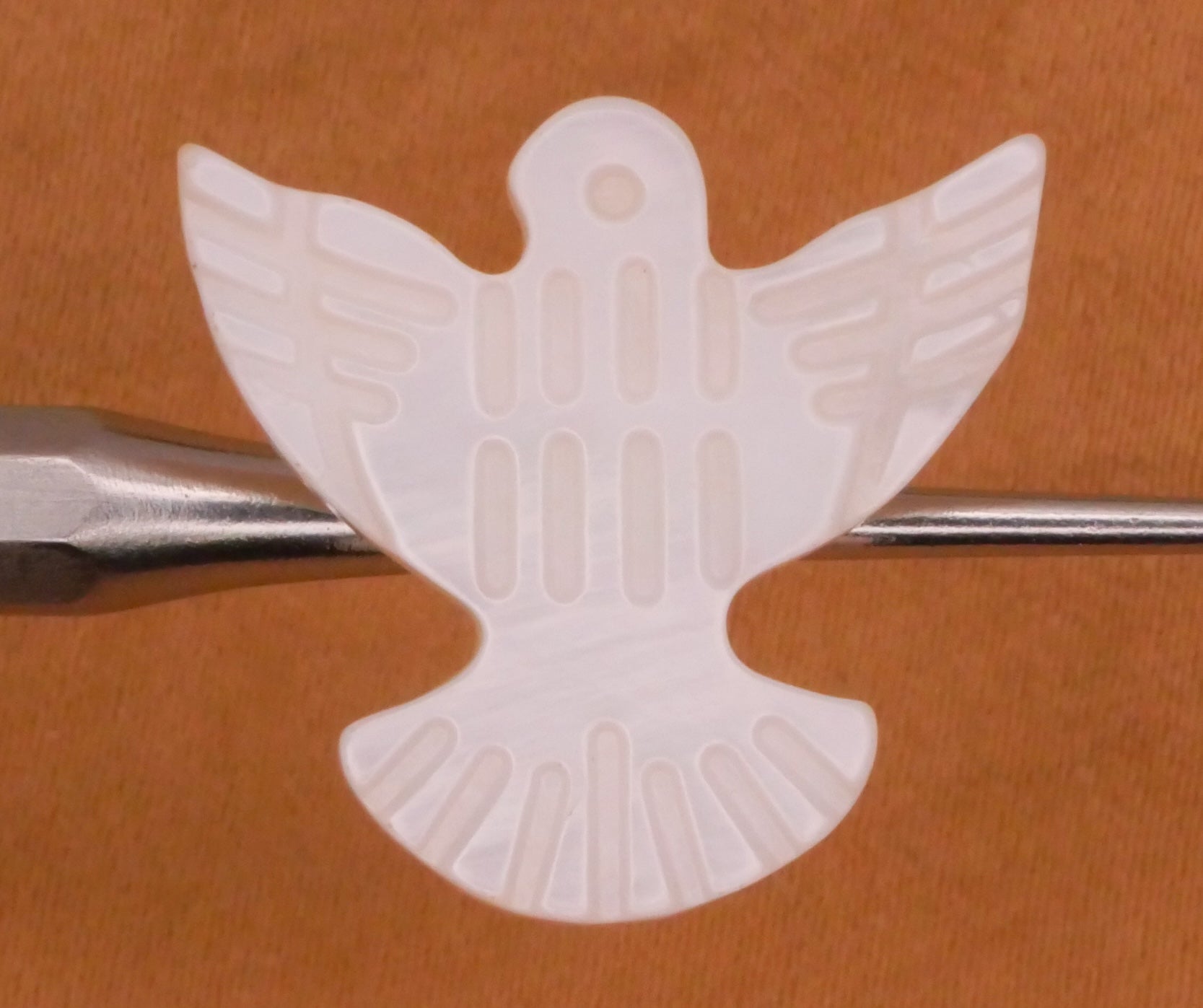 Sweet carved bird mother of pearl shell button that has southwest design feel. Measures 19 x 20mm / .75" x .79".