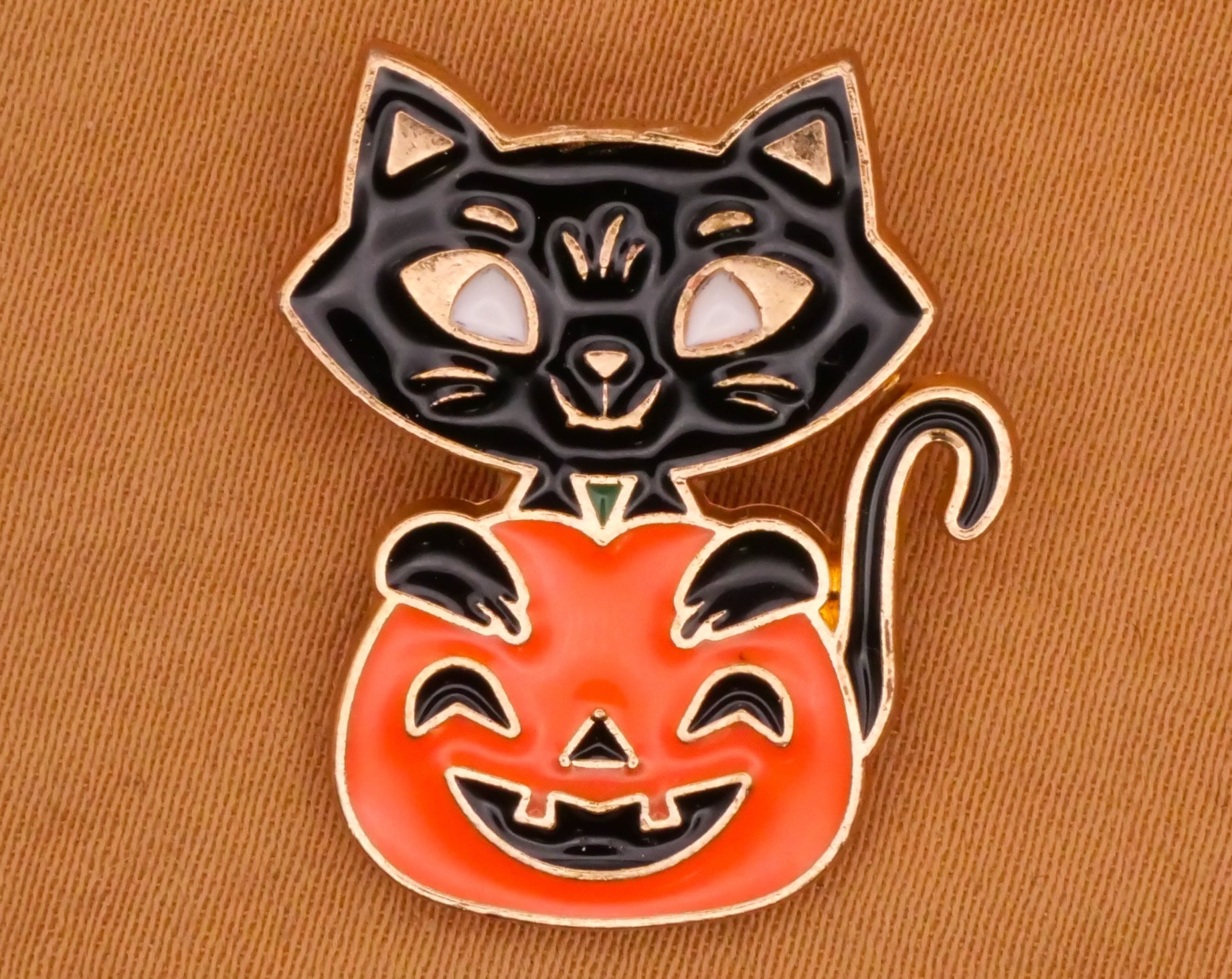 Black Cat Jack O' Lantern Pumpkin Enamel Metal Button 19x23mm