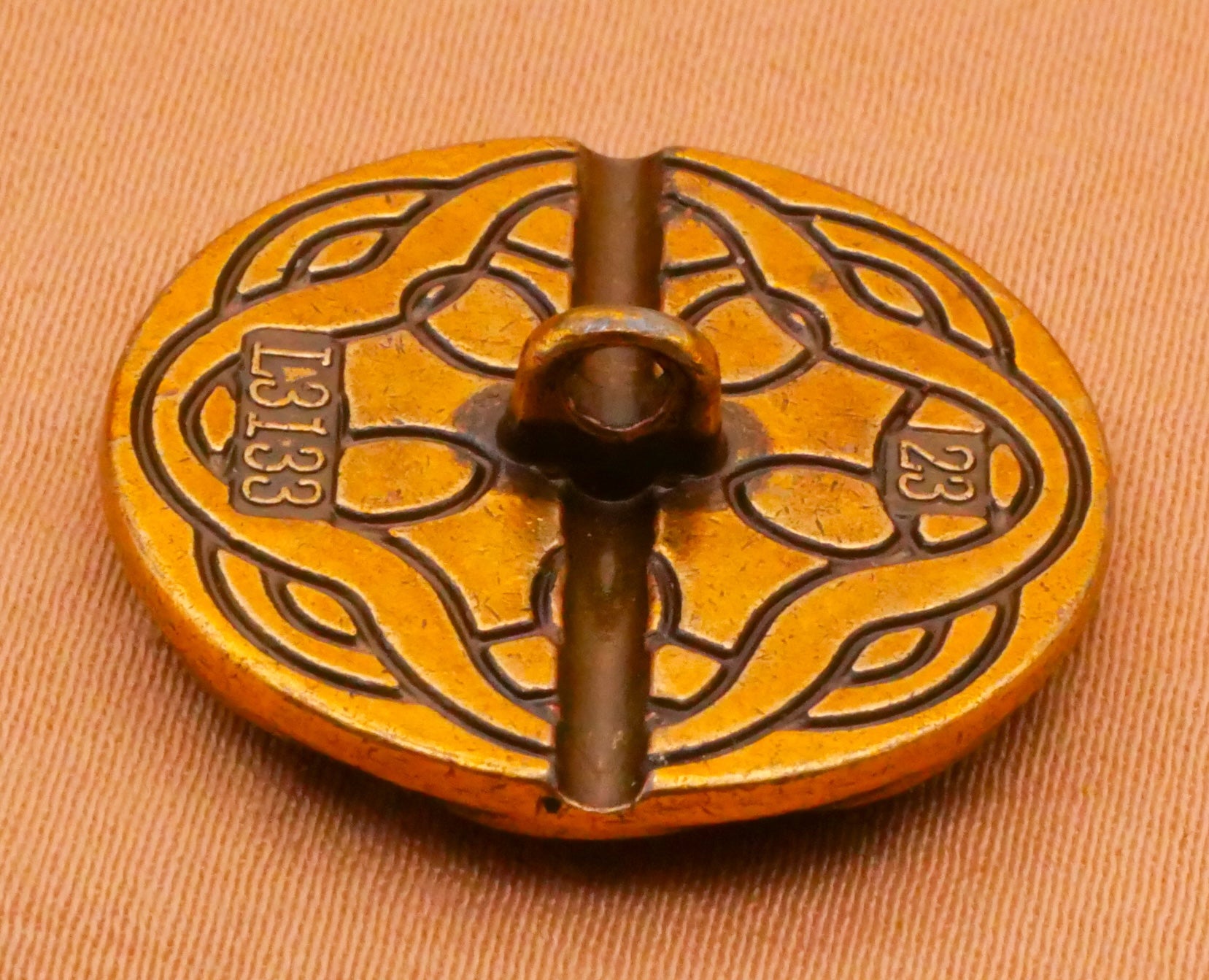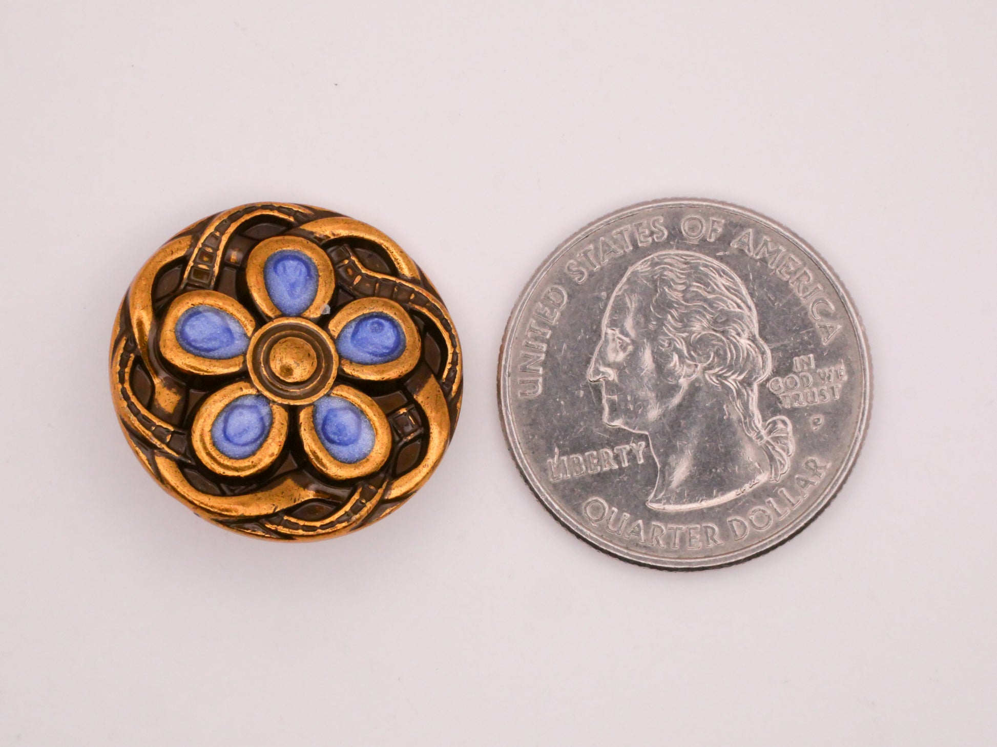 Love this flower button with blue enamel petals and intertwined ribbon edge. Metal button measures 23mm / .91" across.