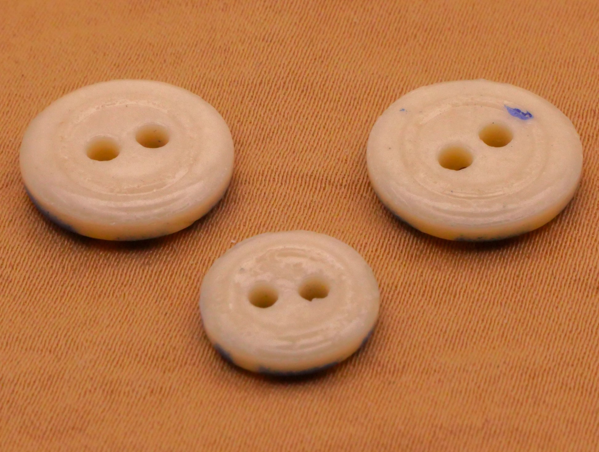 Lovely vibrant blue stencil design china button, choose your favorite. These antique buttons measure between 12-14mm / .47"-.55". Choose left, center, or right.