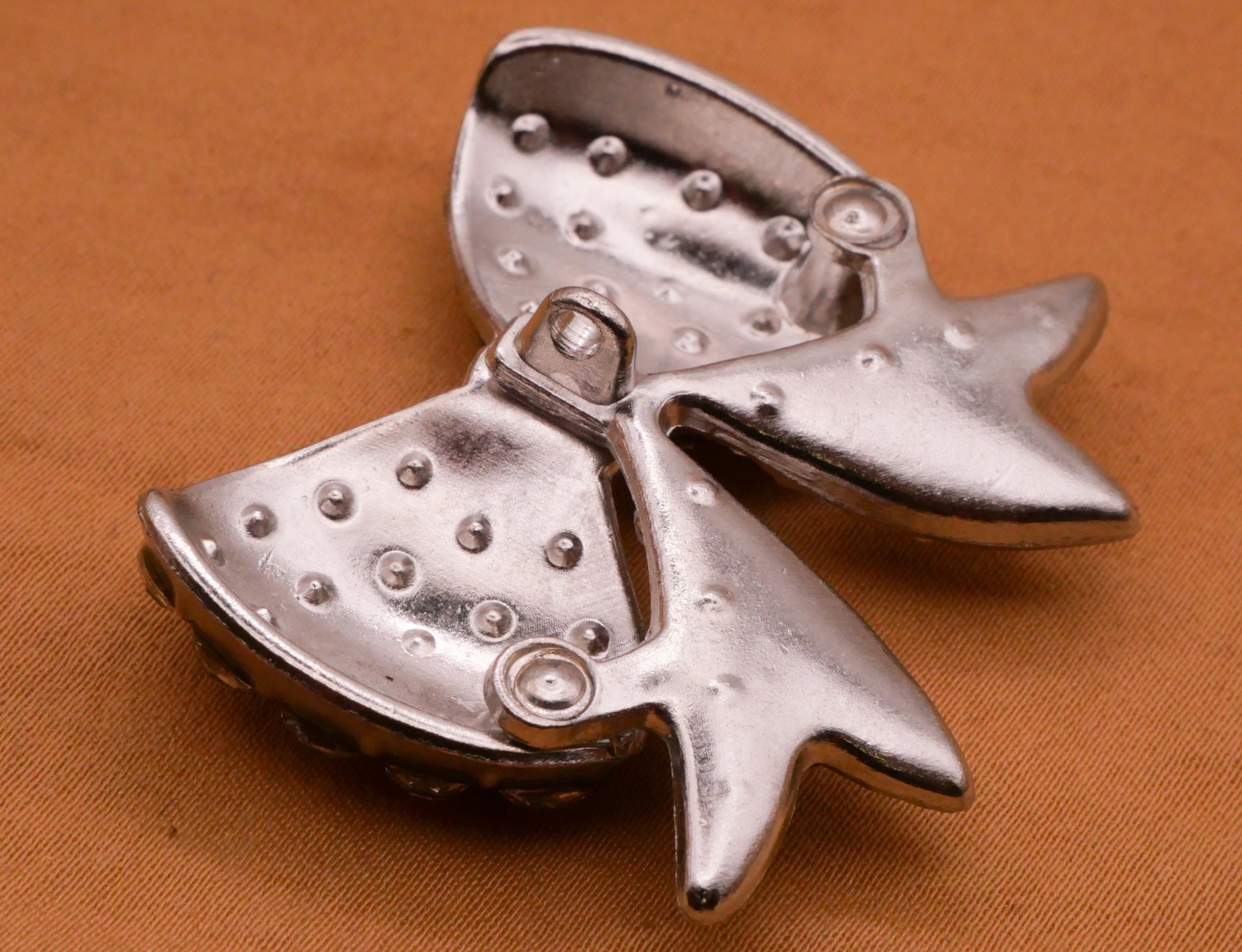 Bow Fashion Rhinestone Silver Metal Large Button 34x39mm