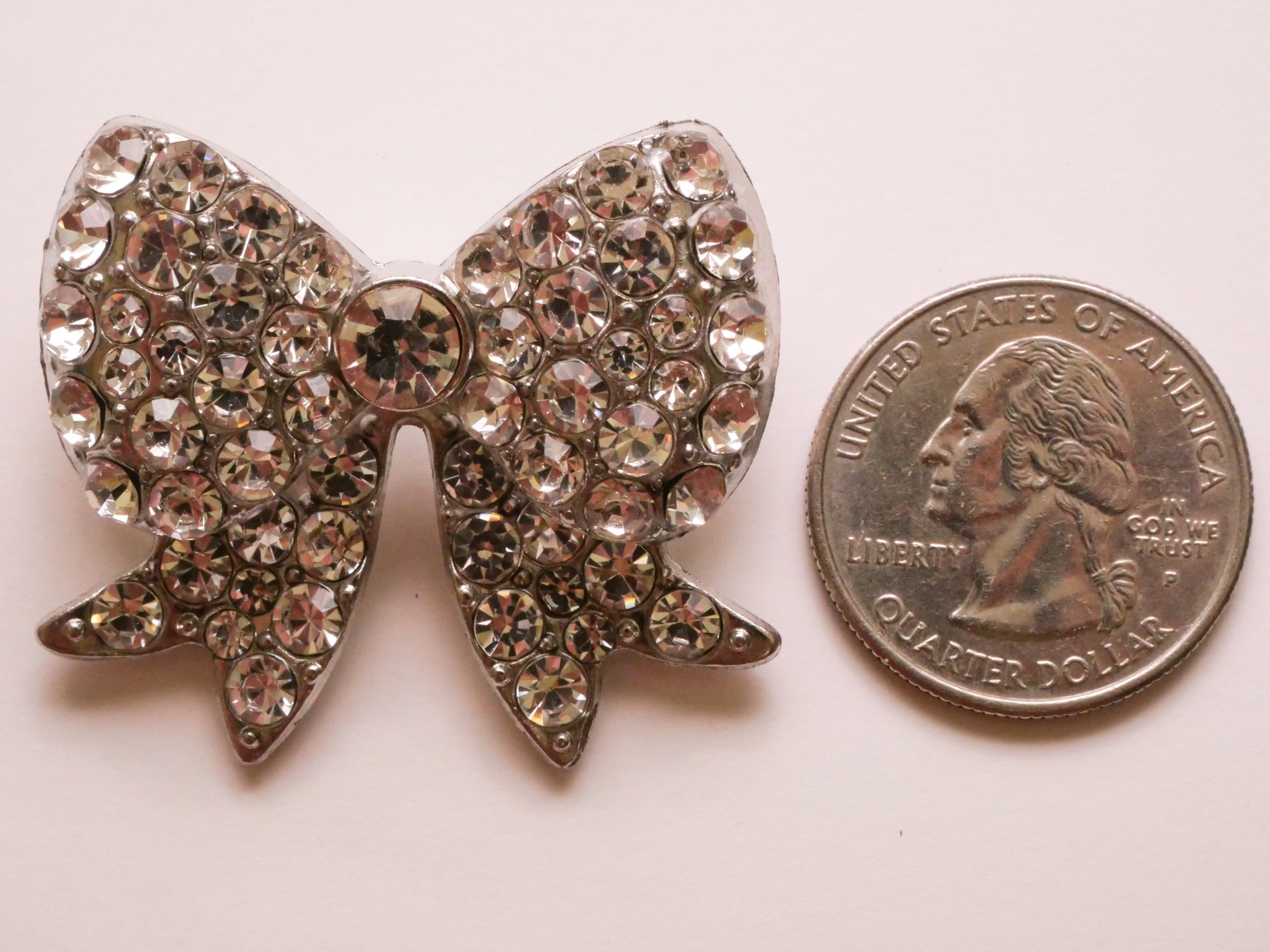 Sparkles! Beautiful large bow button covered in rhinestones! Metal button measures 34 x 39mm / 1.34" x 1.54".
