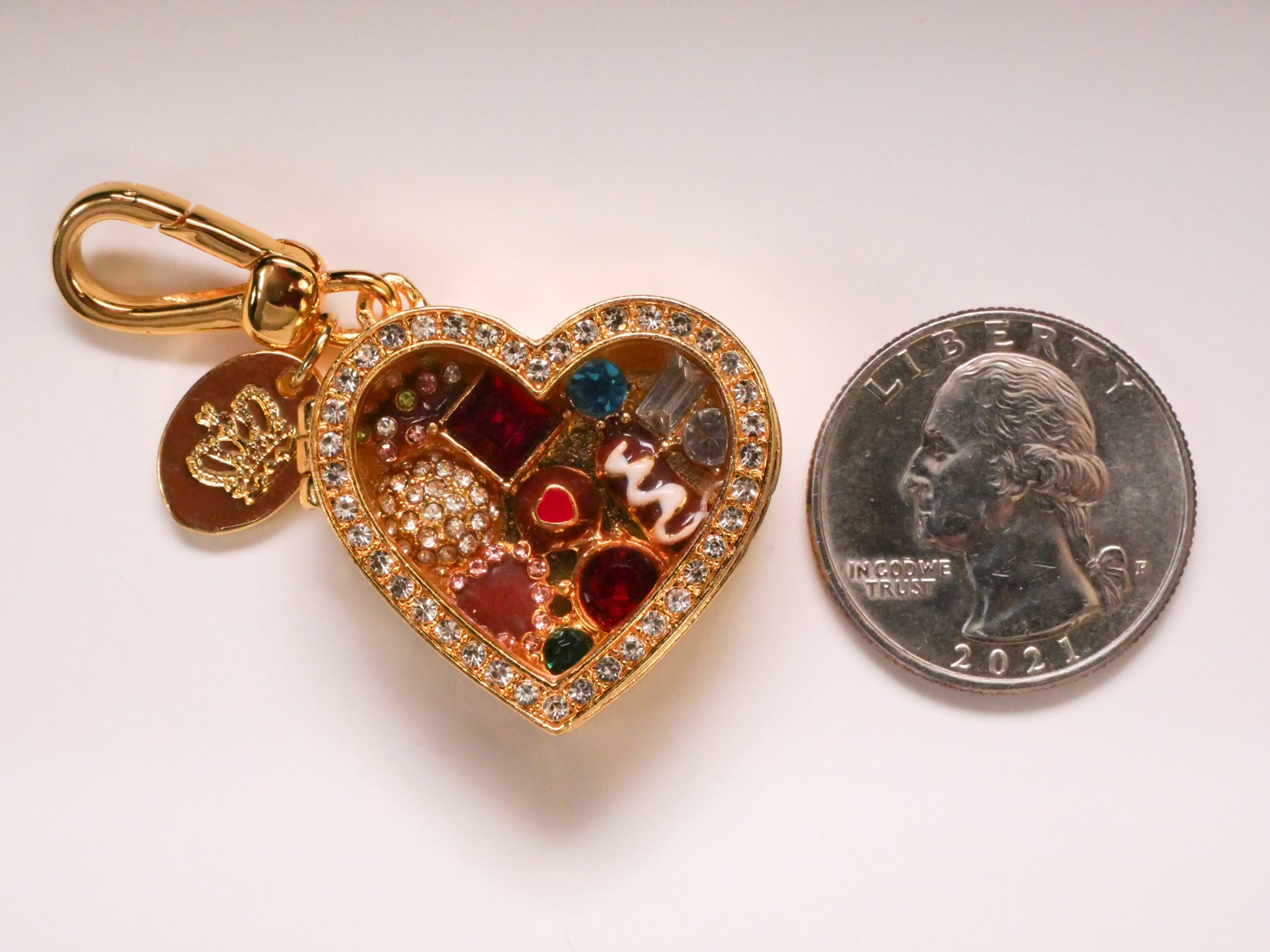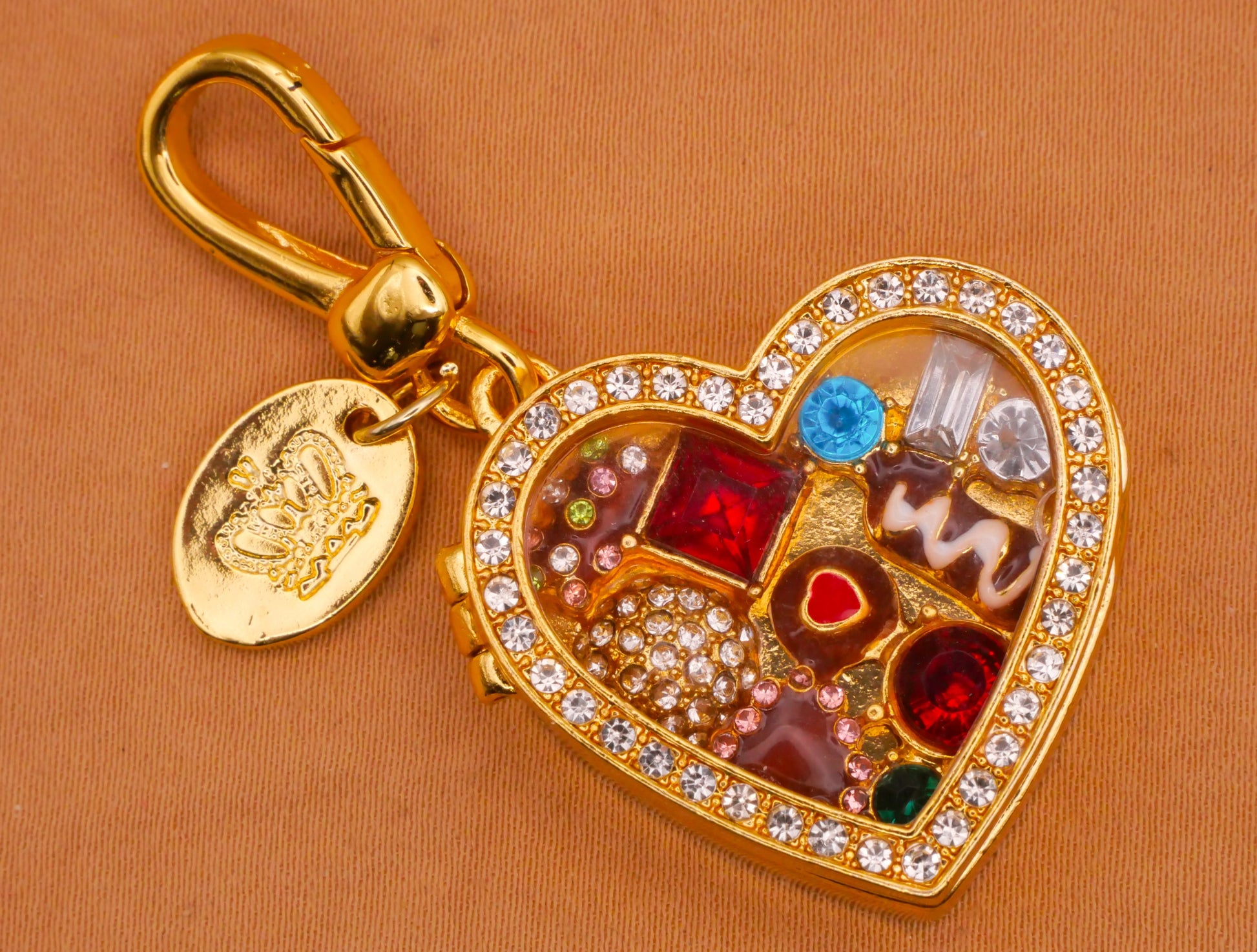 Candy Filled Heart Box Rhinestone Enamel Metal Keychain Embellishment 26x28mm