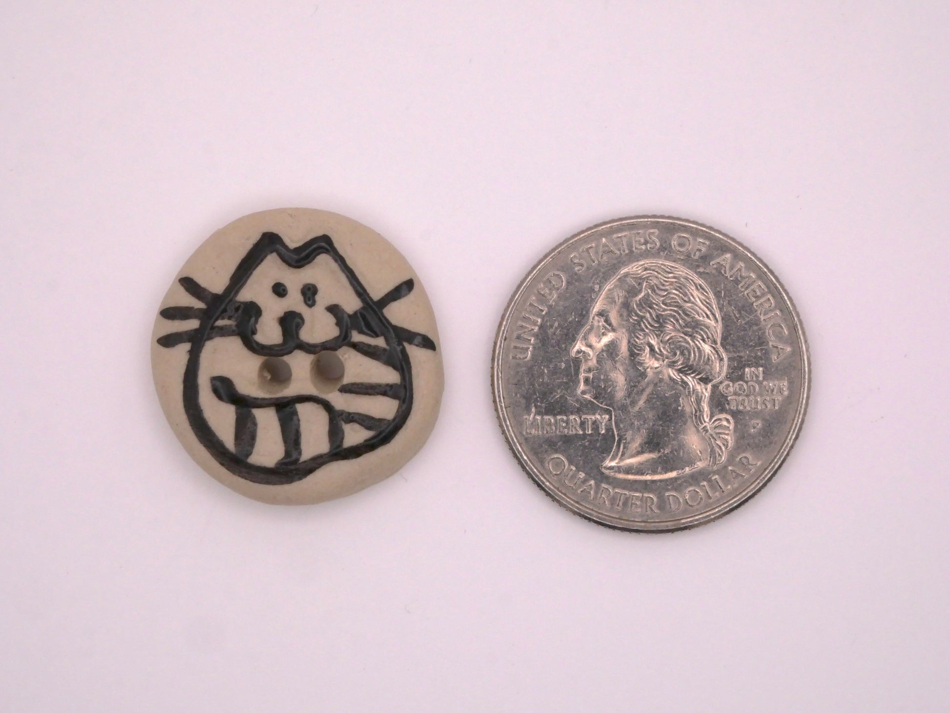 Cat Ceramic Handmade Hand-Painted Black Outlines Kitty Button 22mm