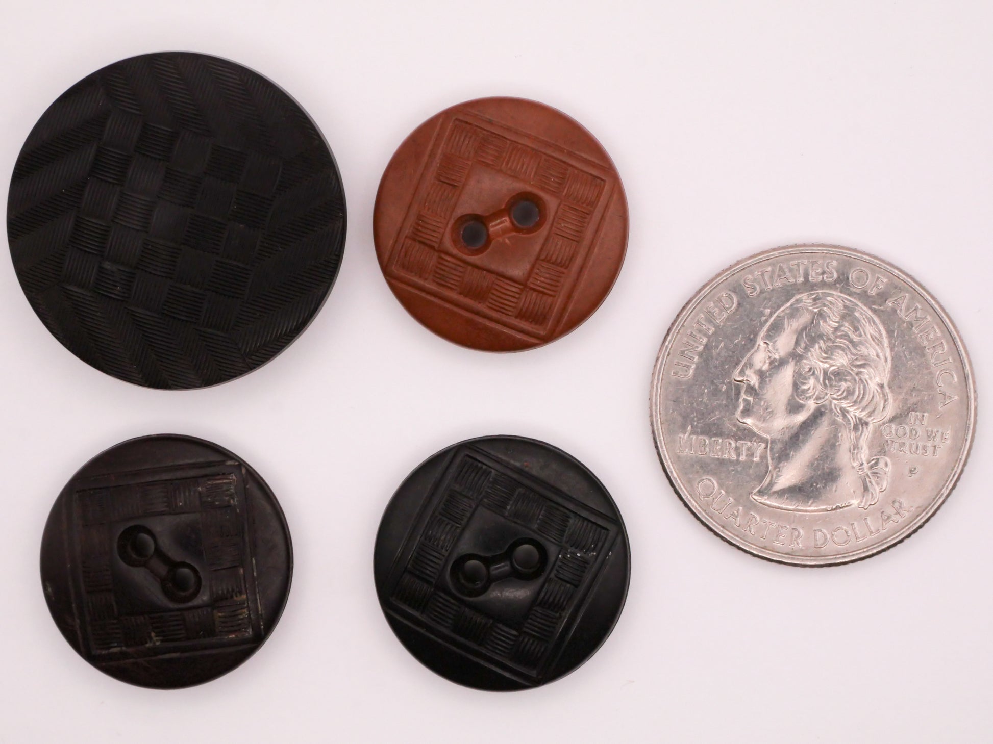 Love these checkerboard buttons, they remind me of card tables. Top left is vegetable ivory and the rest are pressed vintage plastic / composition buttons. These measure between 19-25mm / .75"-.98". Choose top or bottom and left or right.