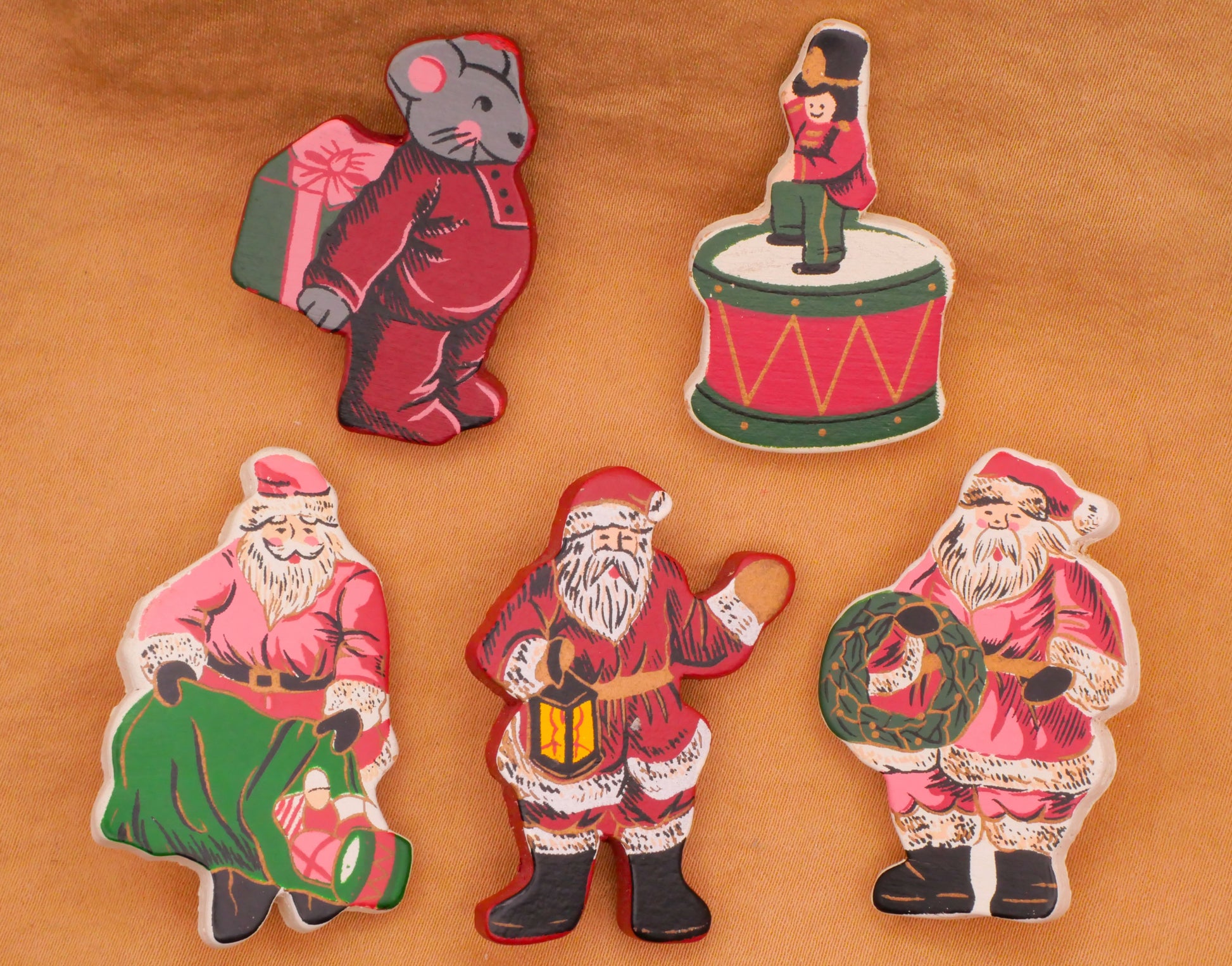 Christmas Vintage Mouse Drum or Santa Wood Button Various 23-43mm