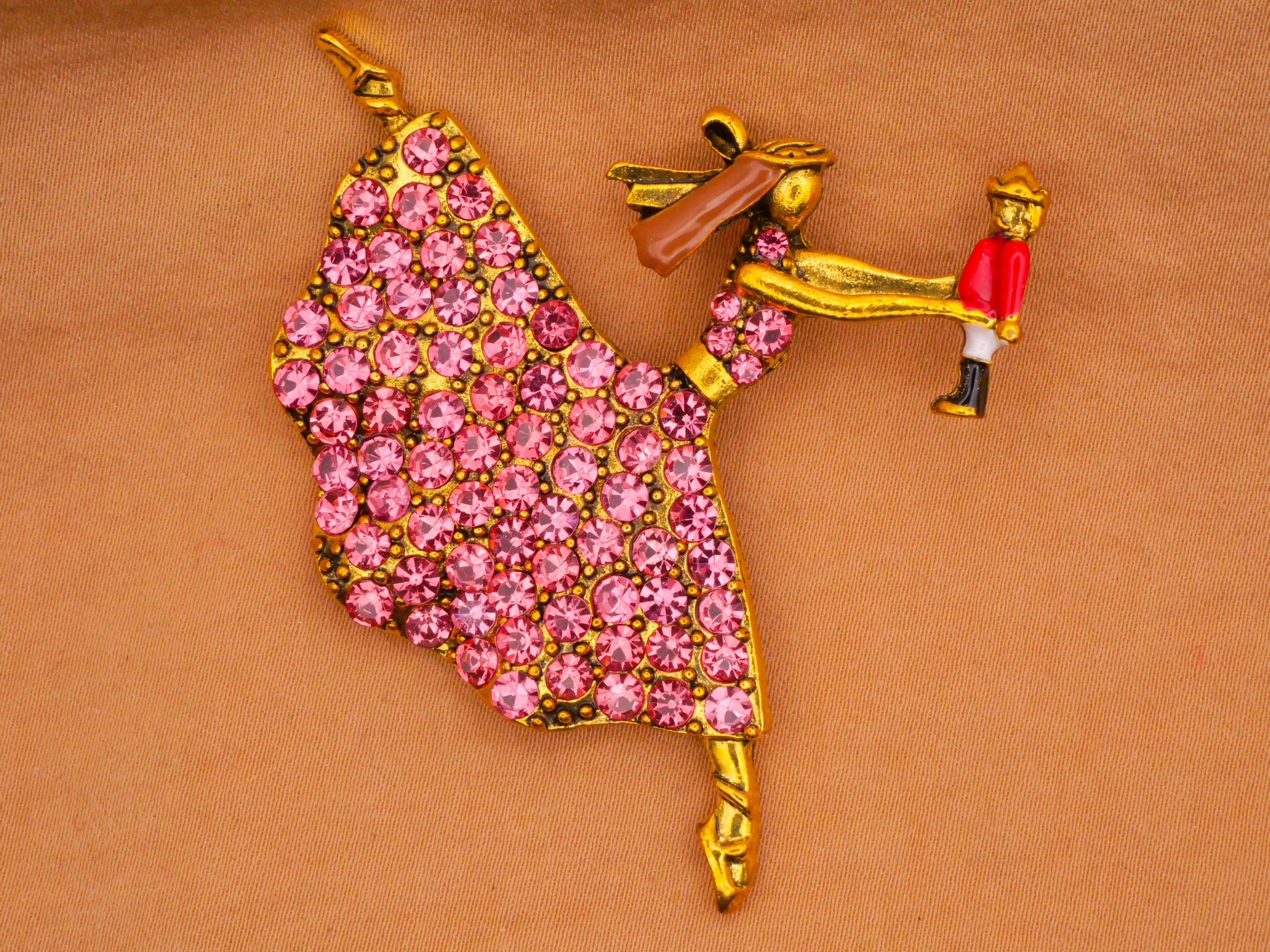Clara The Nutcracker Pink Rhinestone Enamel Metal Large Button 50x63mm